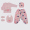 Pembe Kalpli Tavşan Desenli 5 Parça Kız Bebek Zıbın Seti
