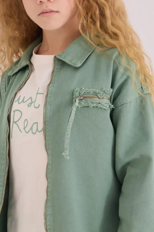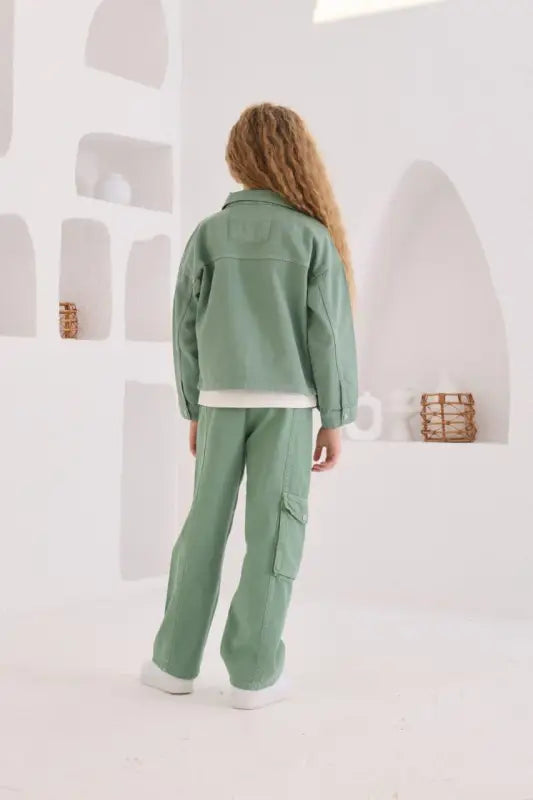 Kız Çocuk Nane Yeşili Fermuarlı Utility Takım – Cep Detaylı Ceket & Rahat Pantolon | 8-12 Yaş”