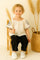 Kız Çocuk Ekru Renk - Geniş Yaka - Kolları Çiçek Nakışlı - Siyahrenk Pantolunlu Takım