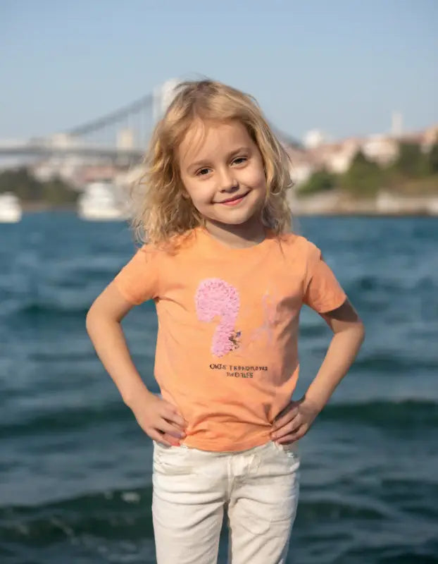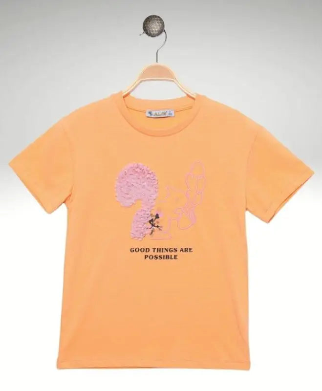 Kız Çocuk Sincap Nakışlı Kısa Kol Turuncu Renk Tişört - 3 -4 - 5 - 6 - 7 Yaş