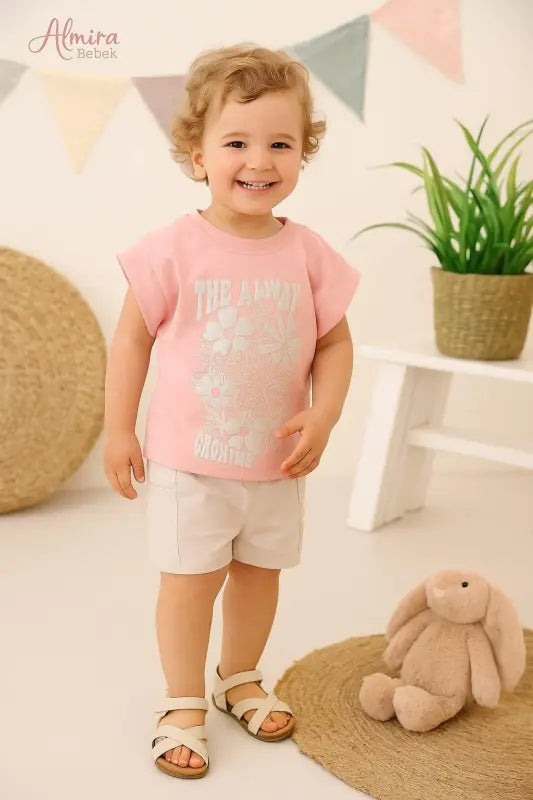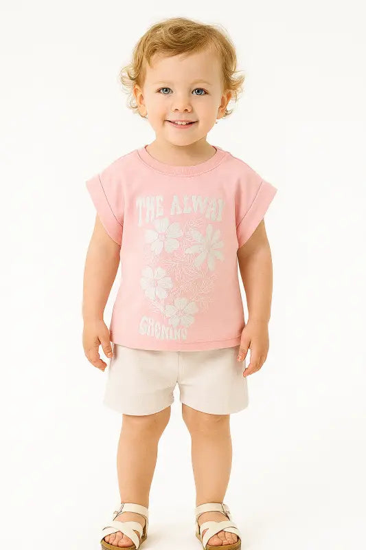 Kız Çocuk The Always Yazılı Simli Kısa Kollu Tişört Şort Takım - Kız Çocuk Giyim/Kız Çocuk Takım