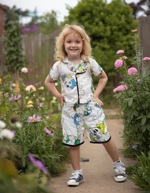 Unisex Düğmeli Köpek Baskılı Kısa Kol Şortlu Pijama Takımı - Kısa Kollu - Düğmeli - Şortlu