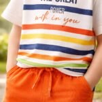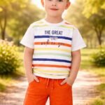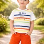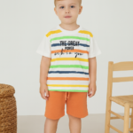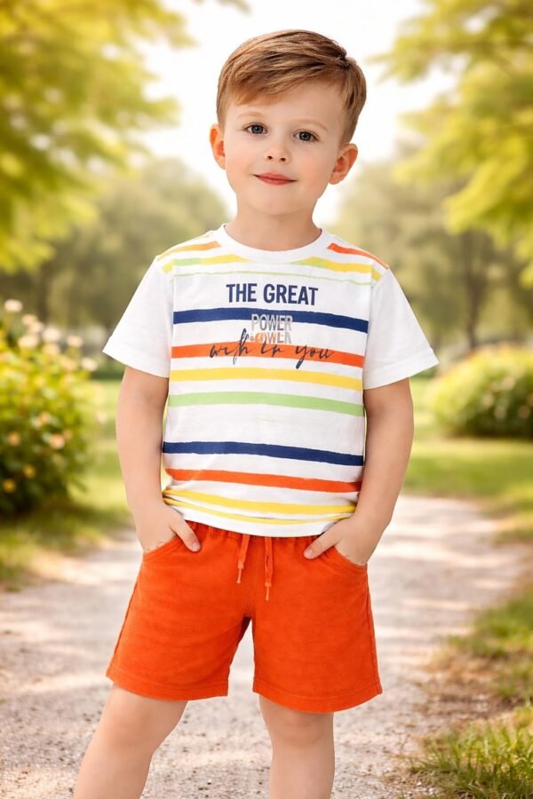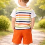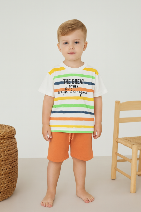 Çizgili Tişört & Turuncu Şort Erkek Çocuk Takımı | Renkli Yaz Macerası