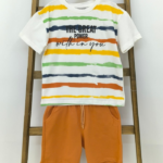 Çizgili Tişört & Turuncu Şort Erkek Çocuk Takımı