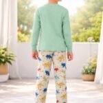 Erkek çocuklar için tasarlanmış, yeşil ve beyaz renklerde, 5-9 yaş arası çocukların rahatlığı ve hareket özgürlüğü düşünülerek üretilmiş pijama takımı. Uzun kollu gömlek ve desenli pantolondan oluşur. Yumuşak kumaşıyla hassas ciltlere uygundur. Lastik bel ve ribana detaylar sayesinde kolay giyilir ve uzun süre formunu korur. Günlük kullanım, uyku ve evde rahatlıkla tercih edilebilir. Dayanıklı yapısı ile uzun ömürlüdür, yıkama sonrası şeklini kaybetmez.