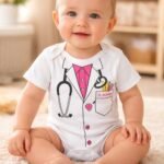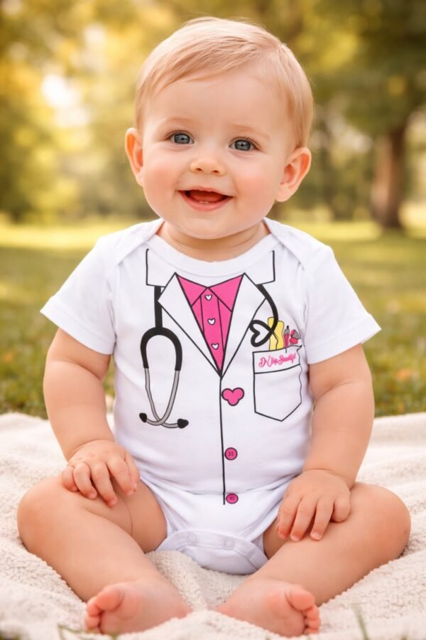 Doktor Desenli Çıtçıtlı Zıbın – Yenidoğan Giysileri – Mavi Pamuklu Kumaş – 0 – 6 Ay