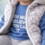 Tişört (Üst): Mavi renkli, uzun kollu ve yuvarlak yakalı bir tişört. Ön kısmında beyaz harflerle İngilizce "YOU MUST BELIEVE YOU CAN DO IT" yazısı yer alır. Bu, motivasyonel bir slogan içerir.