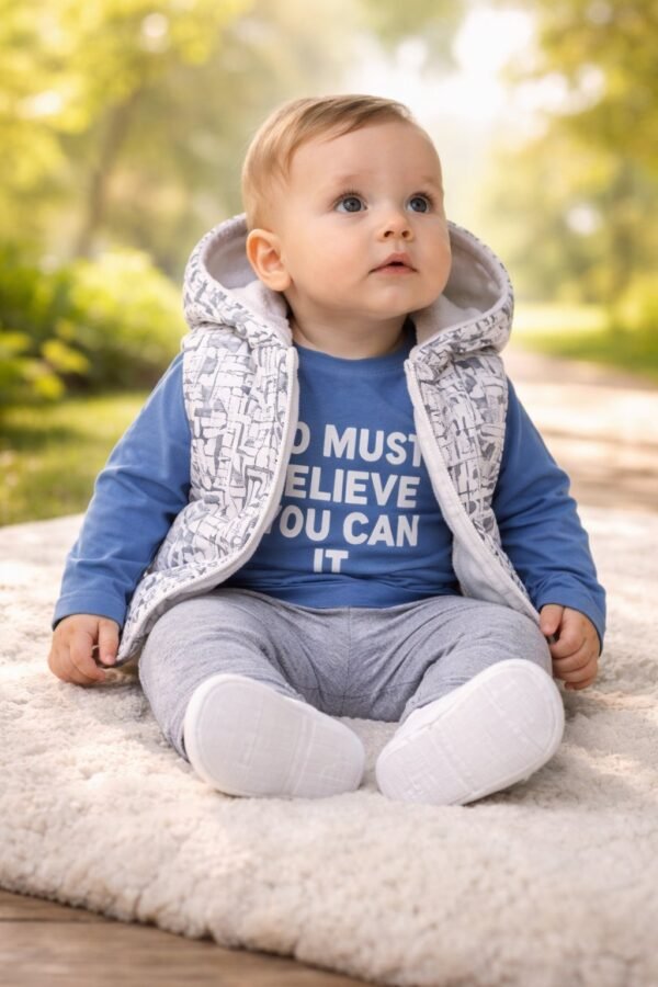 Parça Sayısı: Set toplam 4 parçadan oluşmaktadır. Parçalar: bir adet fermuarlı puffer yelek, bir adet uzun kollu tişört, bir adet pantolon ve bir çift yumuşak tabanlı ayakkabı.