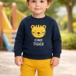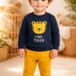 Erkek Bebek Cute Tıger Yazılı Kaplan Kafa Baskılı Lacivert Renkli 2litk. nasıl bir kumaştan üretilmiştir?
