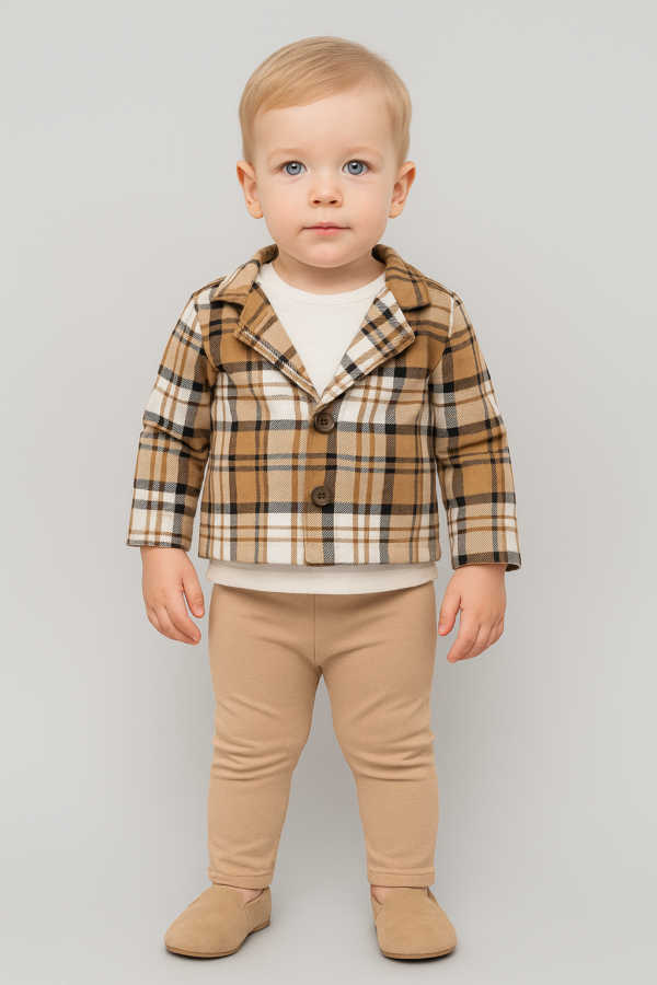 Erkek Bebek Ekoseli Ceket- Sweat- Pantolon Takım