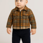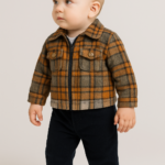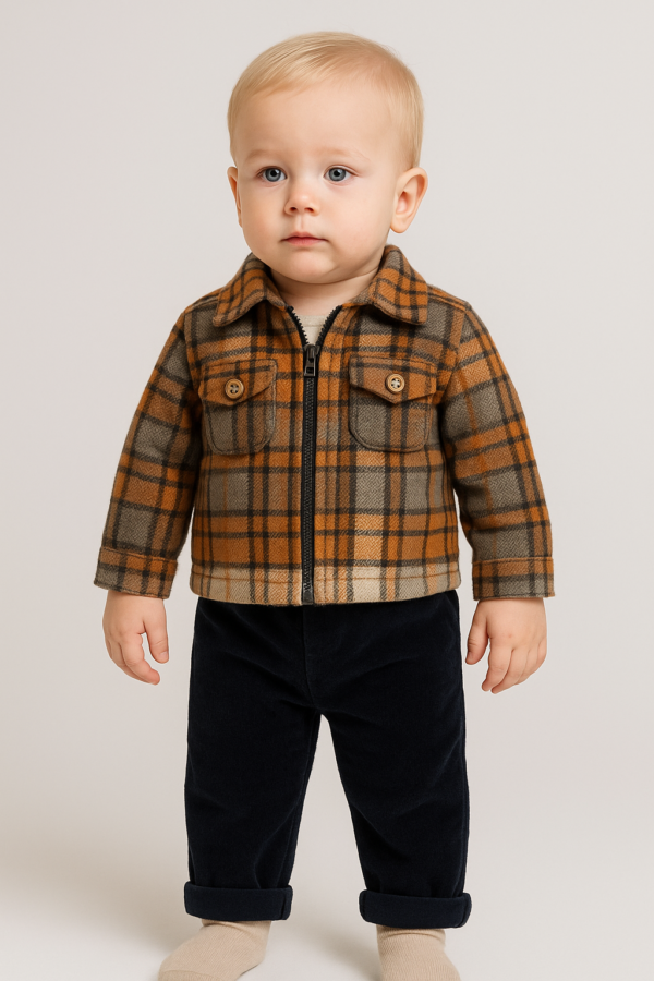 Erkek bebek ekoseli fermuarlı ceketli kadife pantolonlu 3lü takım