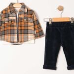 Erkek Bebek Ekoseli Fermuarlı Ceketli Kadife Pantolonlu 3lü Takım