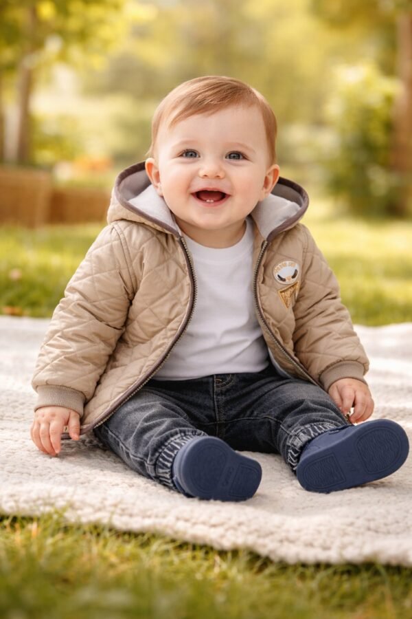 Erkek Bebek Kapşonlu – Kapitone Montlu -kot Pantolonlu 3lü Takım