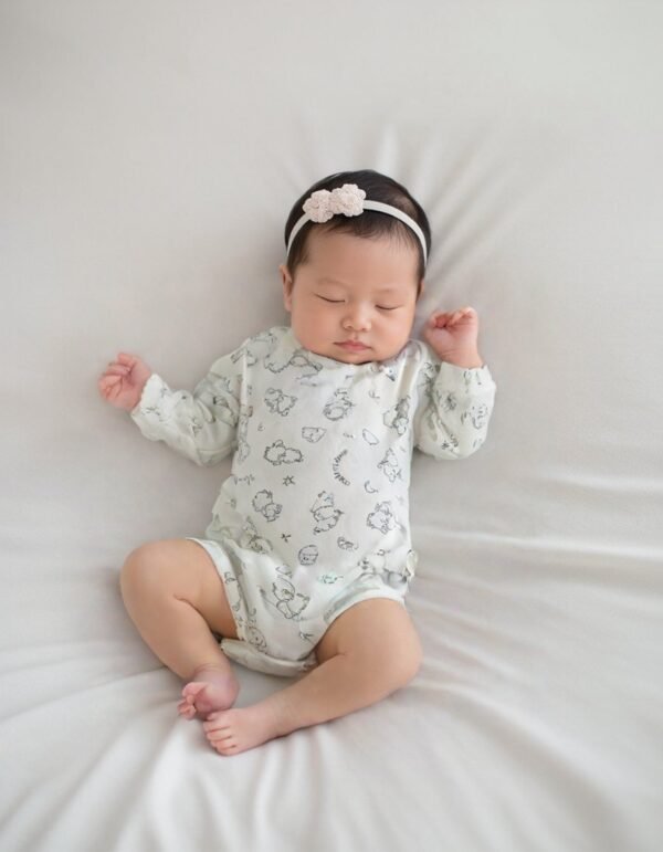 %100 pamuklu kumaştan üretilmiştir. Bebek cildi için güvenli, nefes alan ve yumuşak yapıdadır.