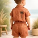 Erkek Bebek Palmiye Baskılı Kısa Kol Gömlekli Şortlu Keten Takım