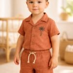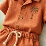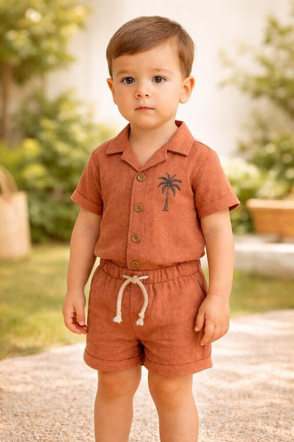 Erkek Bebek Palmiye Baskılı Kısa Kol Gömlekli Şortlu Keten Takım nasıl bir kumaştan üretilmiştir?