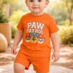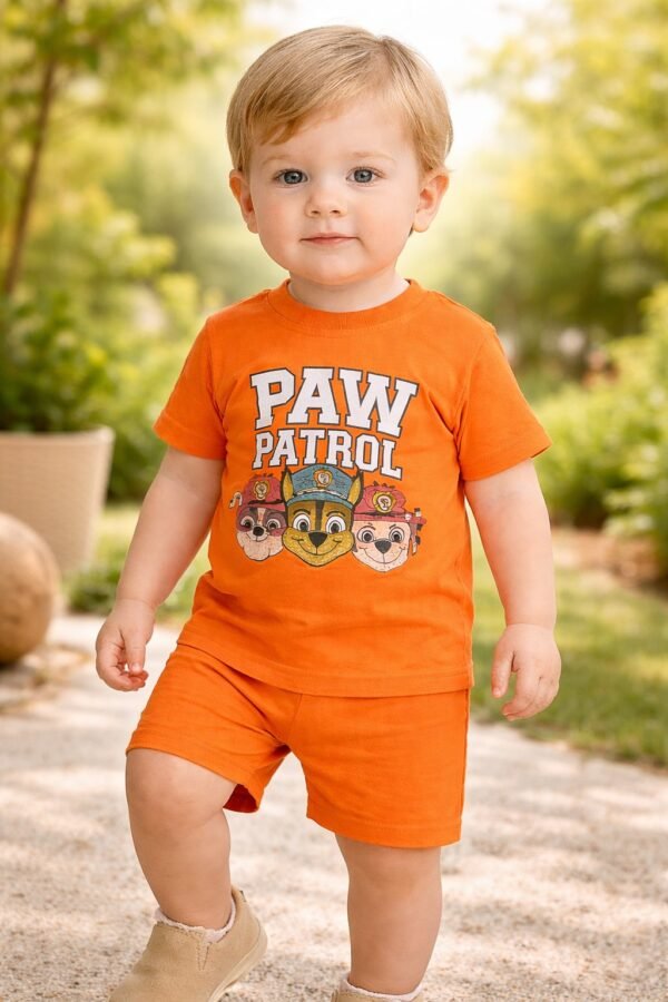 Erkek Bebek Paw Petrol Baskılı Turuncu Renk Kısa Kollu Şortlu Takım