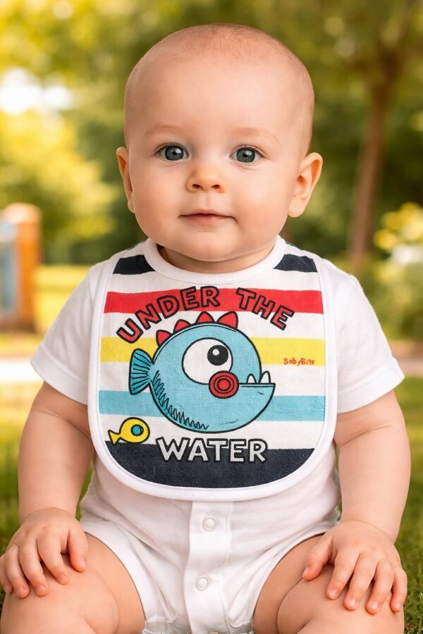 Erkek bebek under the yazılı mama önlüğü
