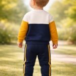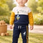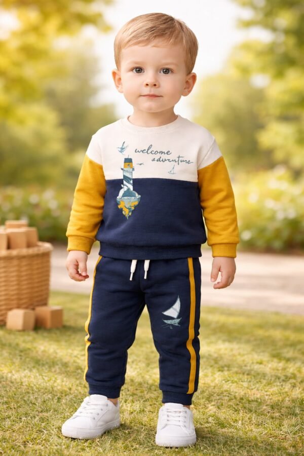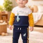 Erkek bebekler için tasarlanmış rahat ve şık bir takım. Lacivert renk seçeneğiyle çeşitli bedenlerde sunulur. Günlük kullanıma uygun olan bu takım, hareket özgürlüğü sağlayan rahat kesimi ile bebeklerin hareketlerini kısıtlamaz. Yumuşak ve dayanıklı kumaşıyla uzun süre kullanılabilir. Set içeriği, bir sweatshirt ve eşofman altından oluşur. Sweatshirt renkli bloklar ve yazı detaylarıyla dikkat çeker. Eşofman lacivert renkte, rahat kesimiyle bebeklerin hareketlerini kolaylaştırır.