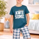 Erkek Çocuk Awe Some Yazılı Kısa Kollu Yeşil Renk Pijama Takımı