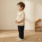 Miniklerin günlük kombinlerine sevimli bir dokunuş! Bu erkek çocuk nakışlı sweatshirt, doğal bej tonu ve üzerindeki "The Three Animals" (Üç Hayvan) temalı zarif nakışlarıyla hem çok şık hem de çok eğlenceli. Bebek ve çocukların hassas tenine uyumlu, yumuşacık dokusuyla gün boyu konfor sağlar.