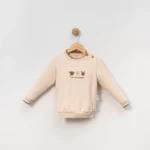 Erkek Çocuk 1-4 Yaş Üç Hayvan Nakışlı Omuzdan Düğmeli Sweatshirt - Bej