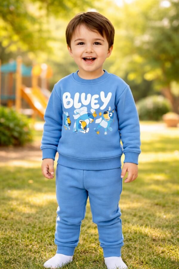 Erkek Çocuk Bluey Yazılı Köpek Baskılı Şardonlu Takım