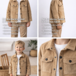 Erkek Çocuk çıt çıt kapamalı- cepli kadife gömlek -uzun kollu bady- kanvas pantolonlu takım