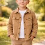 Erkek Çocuk Çıt Çıt Kapamalı- Cepli Kadife Gömlek -uzun Kollu Bady- Kanvas Pantolonlu Takım