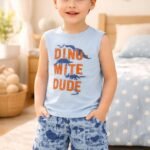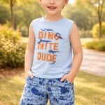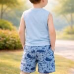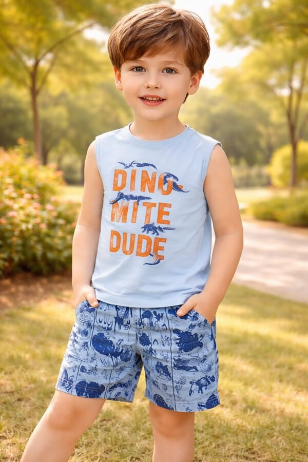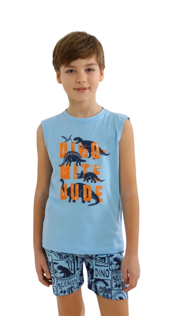 Erkek Çocuk Dinazor Baskılı Sıfır Kollu Şortlu Pijama Takımı