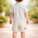 Erkek çocuklar için tasarlanmış, çizgili gömlek ve şort içeren rahat ve şık takım. Hafif keten kumaş, hareket özgürlüğü ve konfor sağlar. Gemi nakışlı çizgili gömlek ve lastikli şort ile günlük kullanıma uygun, pratik giyim seçeneği. Çocukların şıklığını ve rahatlığını bir arada sunar.