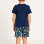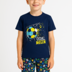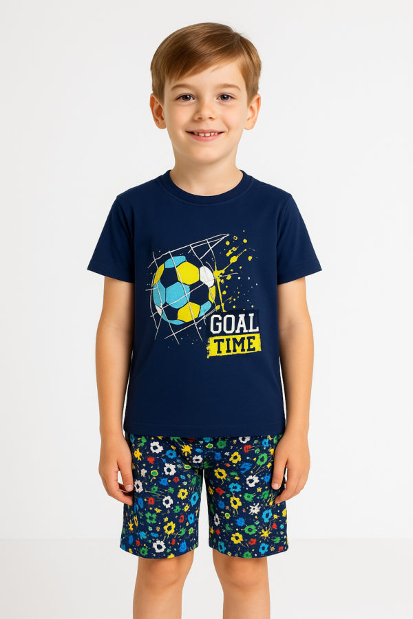 Erkek Çocuk goal time yazılı top baskılı kısa kollu kaprili pijama takımı