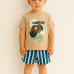 Erkek Çocuk Hayvan Figürlü – Sunrıse Yazılı – Kısakollu – Tişörtlü – Şortlu Takım