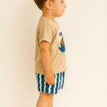Erkek Çocuk hayvan figürlü - sunrıse yazılı - kısakollu- bisiklet yaka - tişöertlü - beli lastikli- çizgi baskılı -şortlu takım