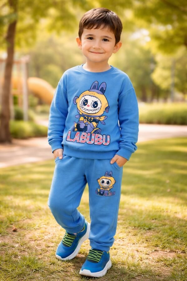 Çocuk modasının en yeni trendlerinden olan bu canlı mavi eşofman takımı, popüler "Labubu" karakteriyle miniklerin stiline neşe katıyor. Gün boyu konfor sunan pamuklu yapısı ve modern kesimi ile hem okulda hem de oyun parkında fark yaratmak isteyen çocuklar için tasarlandı.