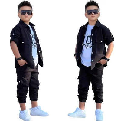 rkek Çocuk 3’lü Gabardin Takım - Siyah Sokak Stili (Los Angeles Serisi)