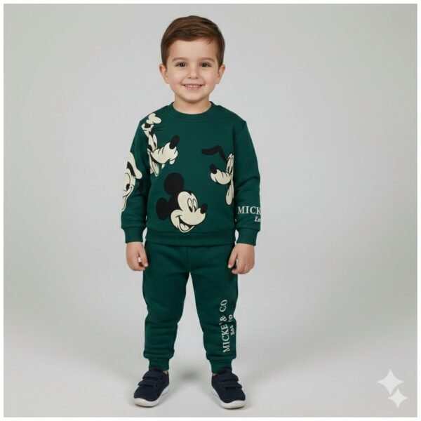 Erkek Çocuk Mickey Baskılı 3 İp Şardonsuz Yeşil Renk Takım nasıl bir kumaştan üretilmiştir?