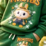 Erkek Çocuk Monsters Yazılı-yeşil Renk Labubu Baskılı Takım