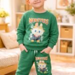 Çocukların enerjik dünyasına uyum sağlayan bu canlı yeşil eşofman takımı, hem konforlu yapısı hem de eğlenceli karakter baskısıyla öne çıkıyor. Pamuklu dokusu sayesinde cildi tahriş etmez ve günlük aktivitelerde maksimum hareket özgürlüğü sunar.