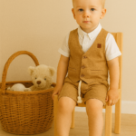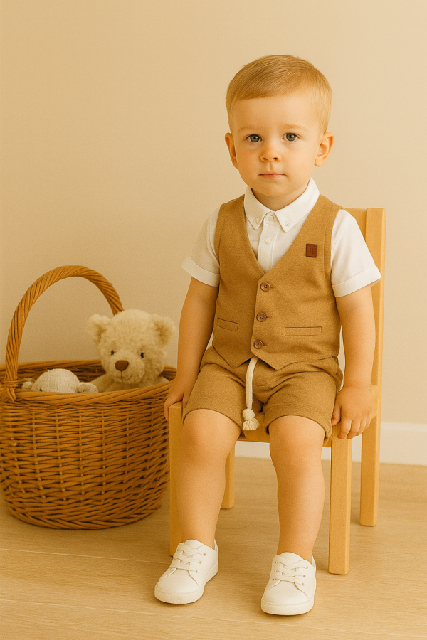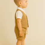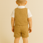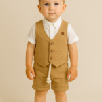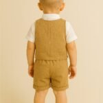 Erkek Çocuk Müslin Kumaş – Kısa Kollu Gömlek – Yelekli – Şortlu Takım