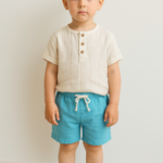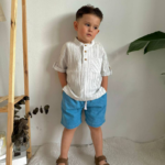 Erkek Çocuk Önden Düğmeli – Müslin Gmlekli – Kot Şortlu Takım