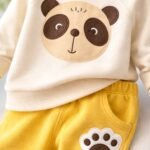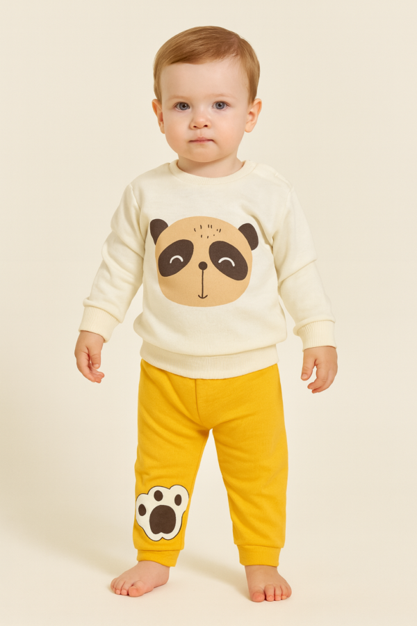 Tasarım Detayları: Üst parçada sevimli panda figürü baskısı, alt parçada ise paça üzerinde estetik pati nakış/baskı detayı.