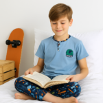 Erkek Çocuk Skate Yazılı Kısa Kollu Pamuklu Mavi Renk Pijama Takımı
