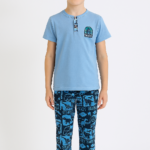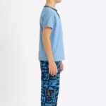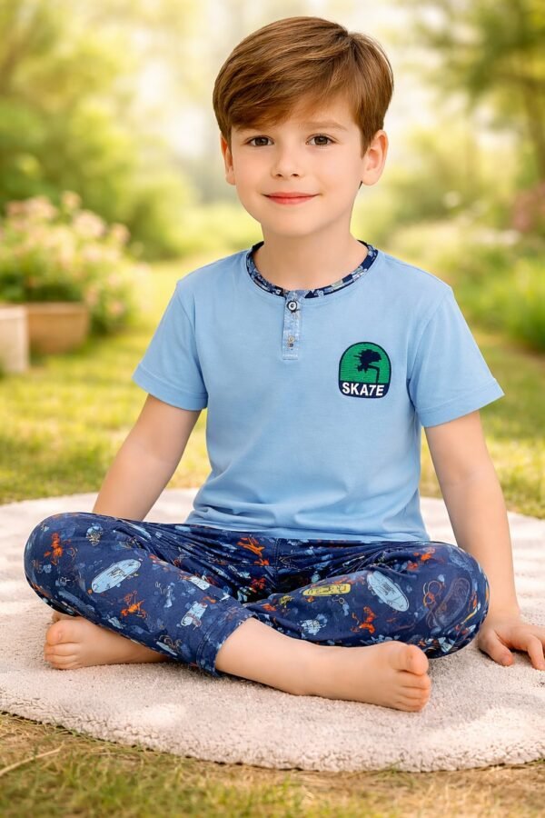 Erkek çocuk skate yazılı kısa kollu pamuklu mavi renk pijama takımı