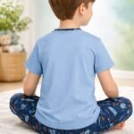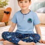 Erkek Çocuk Skate Yazılı Kısa Kollu Pamuklu Mavi Renk Pijama Takımı nasıl bir kumaştan üretilmiştir?