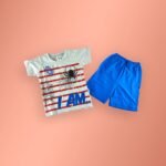 Erkek Çocuk Şortlu 2’li Takım | Mavi & Beyaz & Kırmızı | Şort & Tişört Takım