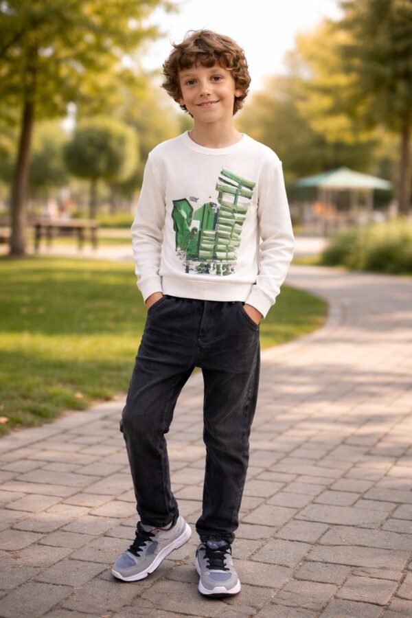 Erkek Çocuk Sweat – Kot Pantolon Takımı Siyah Ve Mavi Seçenekleriyle