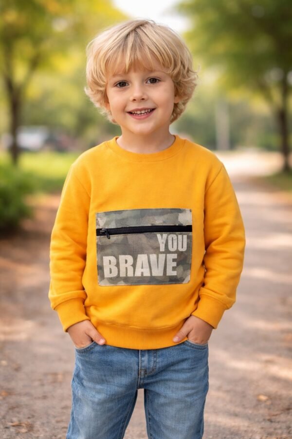 Erkek Çocuk Turuncu Sweatshirt – Uzun Kollu – 1 – 5 Yaş – Pamuklu Ve Fermuarlı Cepli