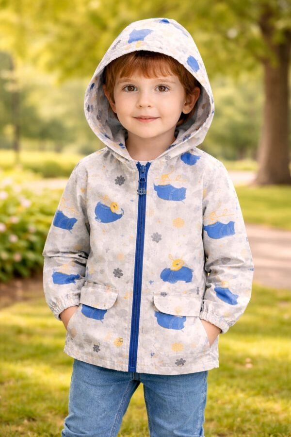 Erkek çocuklar için tasarlanmış, suya dayanıklı ve fermuarlı kapüşonlu yağmurluk. Beyaz ve mavi renklerde, 1 yaş, 2 yaş, 3 yaş ve 4 yaş beden seçenekleriyle sunulmaktadır. Kol uçları lastikli olup, hareket özgürlüğünü kısıtlamadan koruma sağlar. Hafif ve kullanışlı tasarımıyla günlük dış mekan aktivitelerinde tercih edilir. Kapüşonlu yapısı, yağışlı havalarda ekstra koruma sağlar. Ürün, çocukların rahatlığı ve pratik kullanımı göz önünde bulundurularak tasarlanmıştır.
