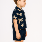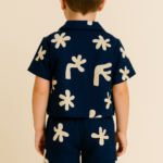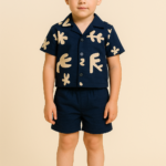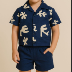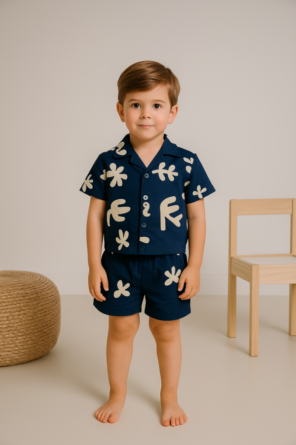 Erkek Çocuk Yaprak Desenli – Önden Düğmeli – Kısa Kollu Gömlekli – Şortlu Müslin Takım